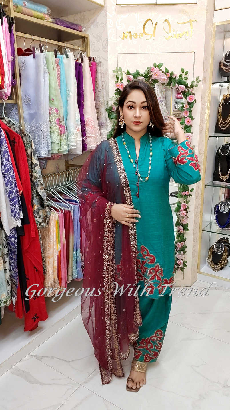 This elegant three-piece suit is designed to give you a refined and graceful look on any occasion. Its beautiful patterns and classic style make it perfect for parties, festive events, and special gatherings.
